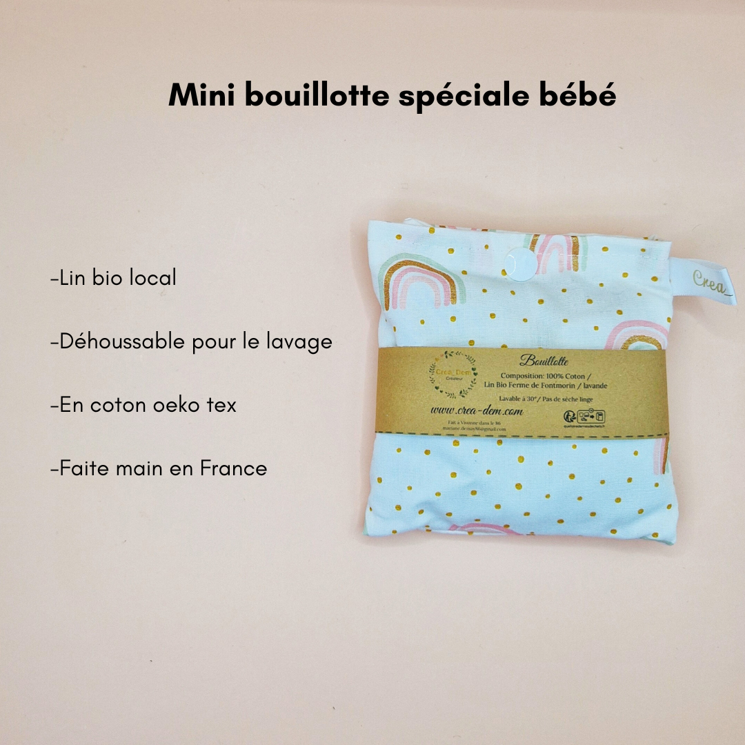Bouillotte bébés lin bio et lavande - Crea Dem : 100% coton, lin bio ferme de Fontmorin, lavande