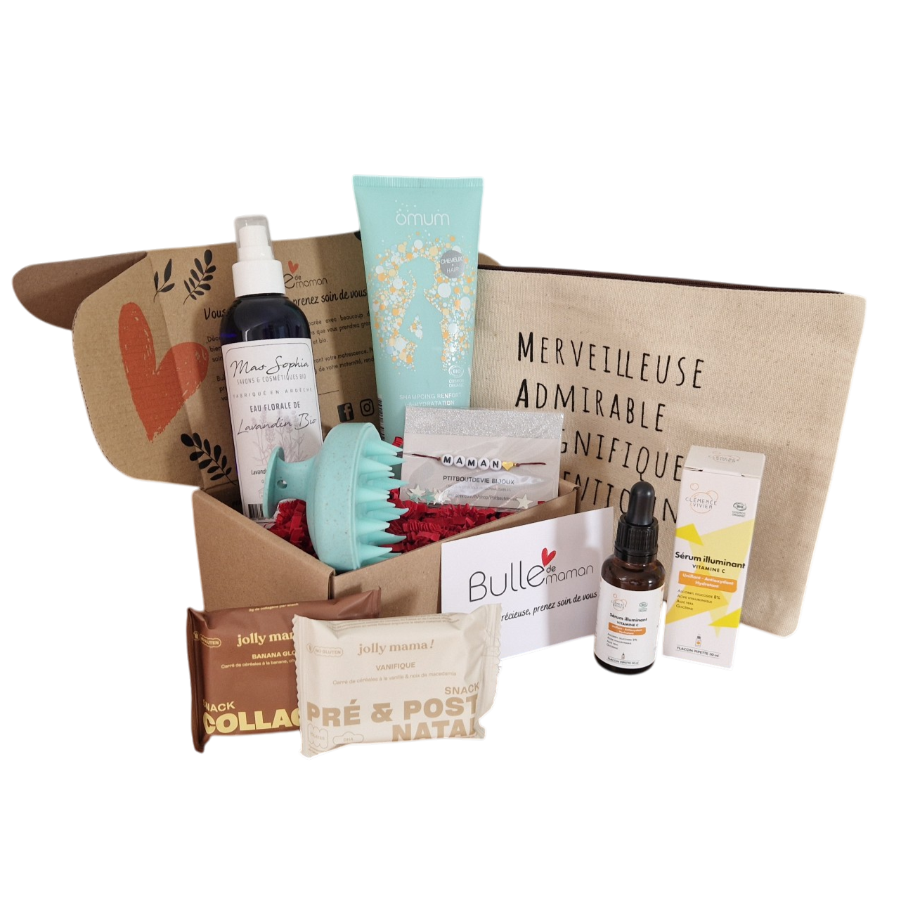 Bulle de maman a concoctĂ© ce coffret cadeau spĂ©cialement pour la fĂȘte des mĂšres. Qu'elle soit une future maman ou une jeune maman, vous aurez sans doute envie de la chouchouter fin mai en ce jour si spĂ©cial pour les mĂšres. Le coffret cadeau « Bonne fĂȘte maman » ravira la future ou jeune maman. Nous avons garni la box de 8 produits compatibles avec la grossesse et l'allaitement : des soins, des accessoires et des snacks. L'effet surprise du coffret surprise devrait beaucoup plaire ! Cette box fĂȘte des mĂšres permettra Ă  la femme enceinte ou Ă  la jeune maman en post-partum de dĂ©couvrir des soins de qualitĂ© Ă  tout petit prix puisque Bulle de maman vous fait bĂ©nĂ©ficier d'une remise de + de 10€ !