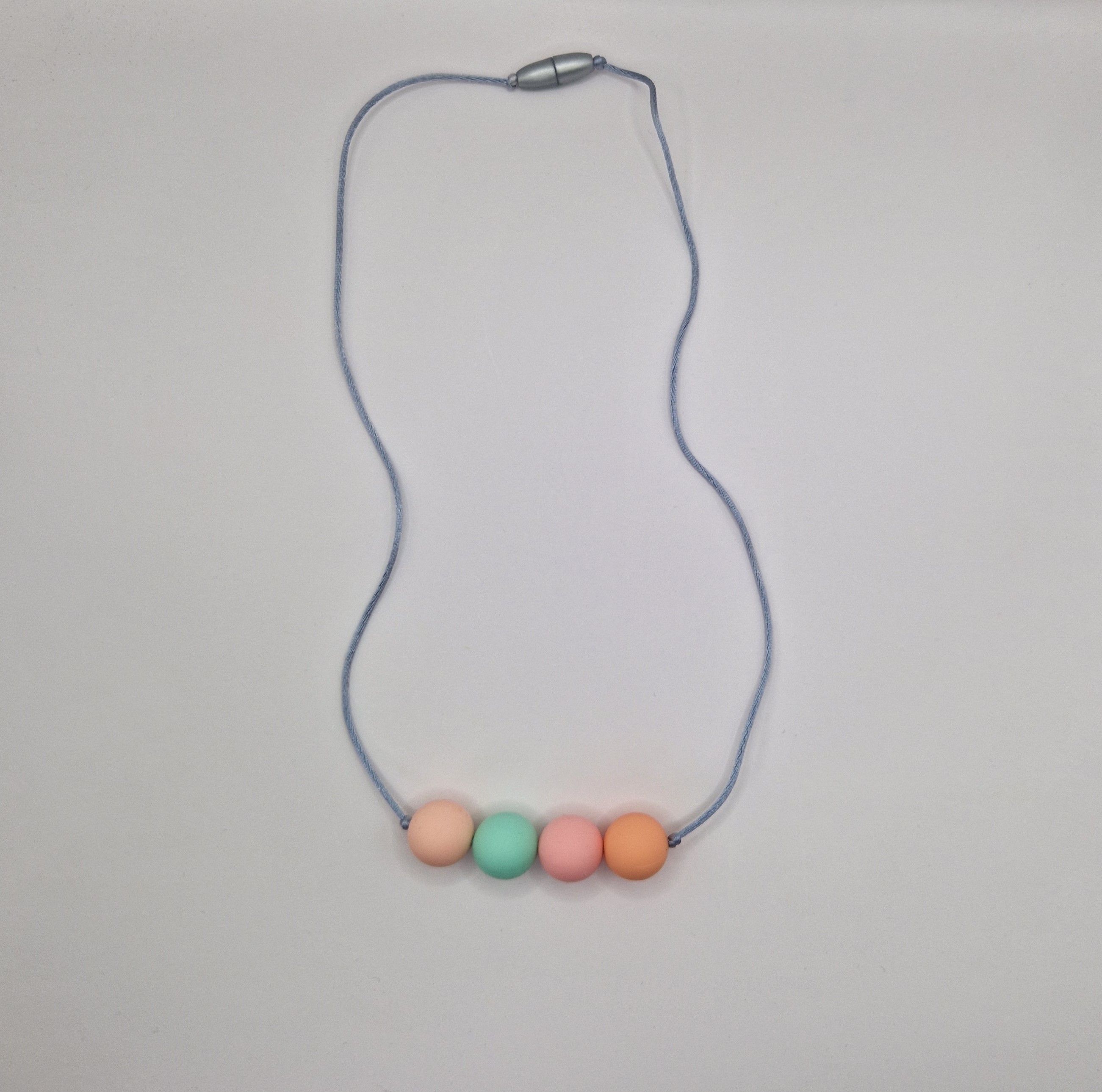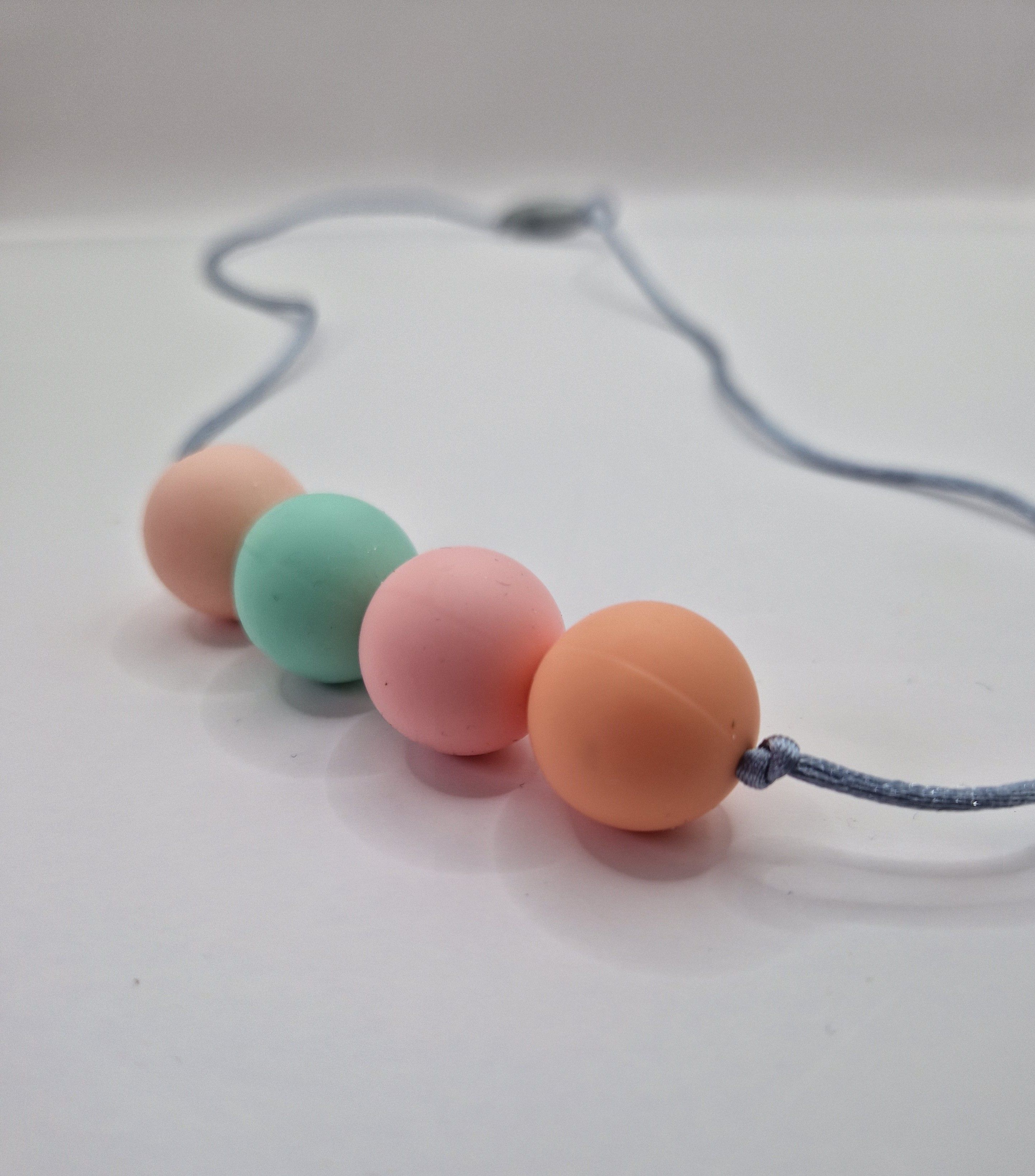 Les colliers sont en silicone alimentaire. Doux et léger, ce collier sera une occupation pour bébé pendant le portage ou pendant l'allaitement. Il pourra également y faire ses dents et développer sa motricité fine.