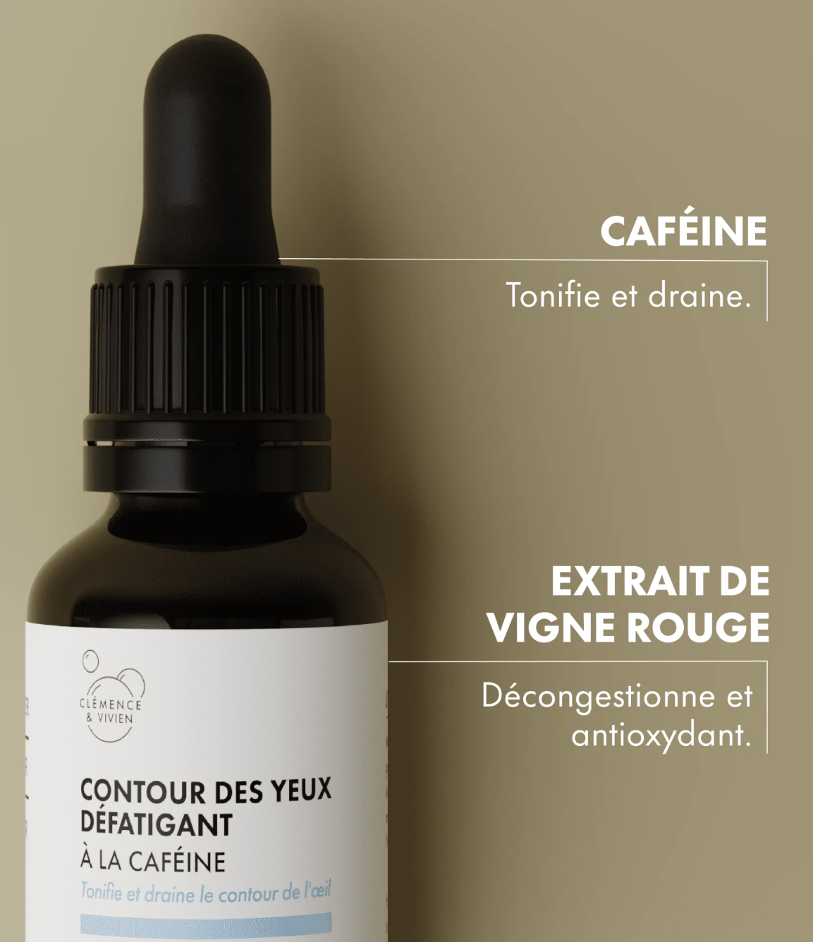 - CafĂ©ine : Drainante et tonifiante, elle rĂ©duit les cernes et poches sous les yeux. - Extrait de vigne rouge : DĂ©congestionnant et antioxydant, les fluides circulent mieux pour des cernes et poches moins apparents. - Hydrolat de bleuet : Hydratant et dĂ©congestionnant, le contour de l'Ćil est moins gonflĂ©. - Acide hyaluronique : Hydratant, les petites ridules sont gommĂ©es.
