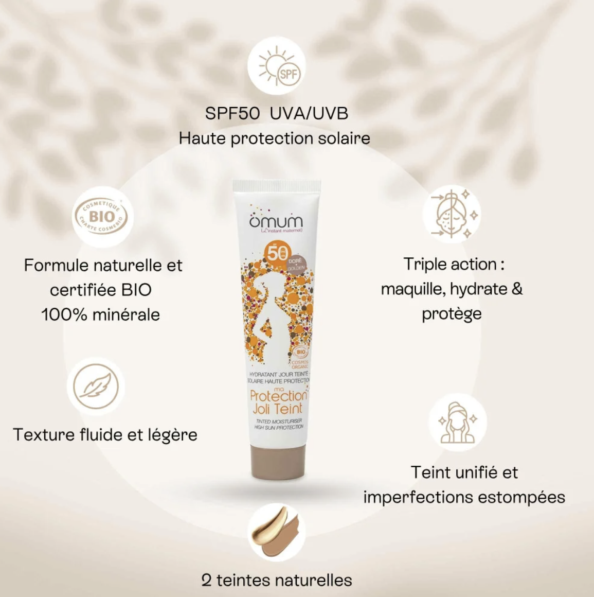 Omum Crème solaire teintée SPF50 Visage | 40 ml