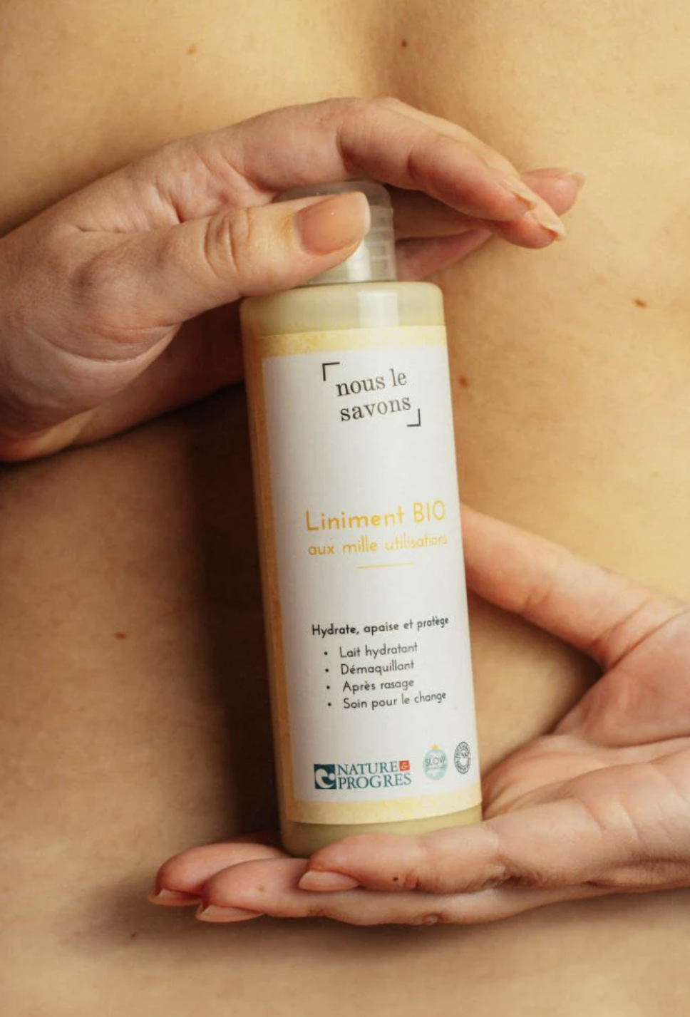 Le liniment est multifonctions est idĂ©al pour les petits et les grands. Sa formule Ă base dâeau de chaux le rends idĂ©al pour le change de bĂ©bĂ© puisquâil neutralise lâaciditĂ© des urines qui irritent la peau des plus petits. Le liniment sâutilise en lait dĂ©maquillant. Sa texture huileuse permet un dĂ©maquillage en douceur notamment si vous avez le contour des yeux fragiles. Astuce : le liniment est un excellent hydratant pour le cuir !