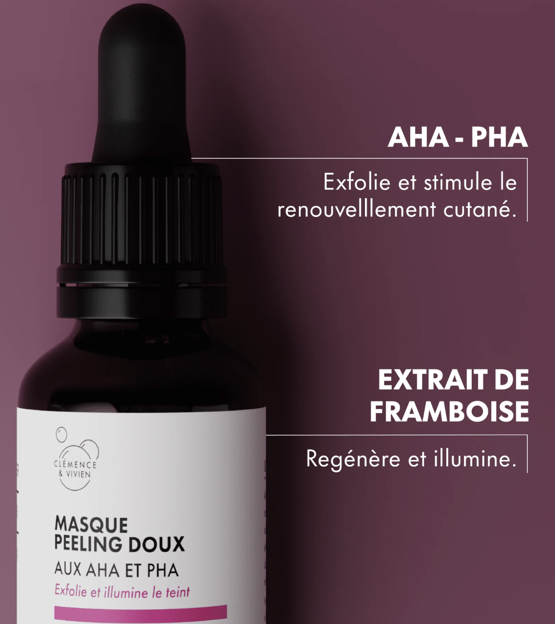 ILLUMINER : débarrassée des cellules mortes, la peau reflète mieux la lumière, le teint est uniforme, éclatant et lumineux (AHA, PHA et extrait de framboise).