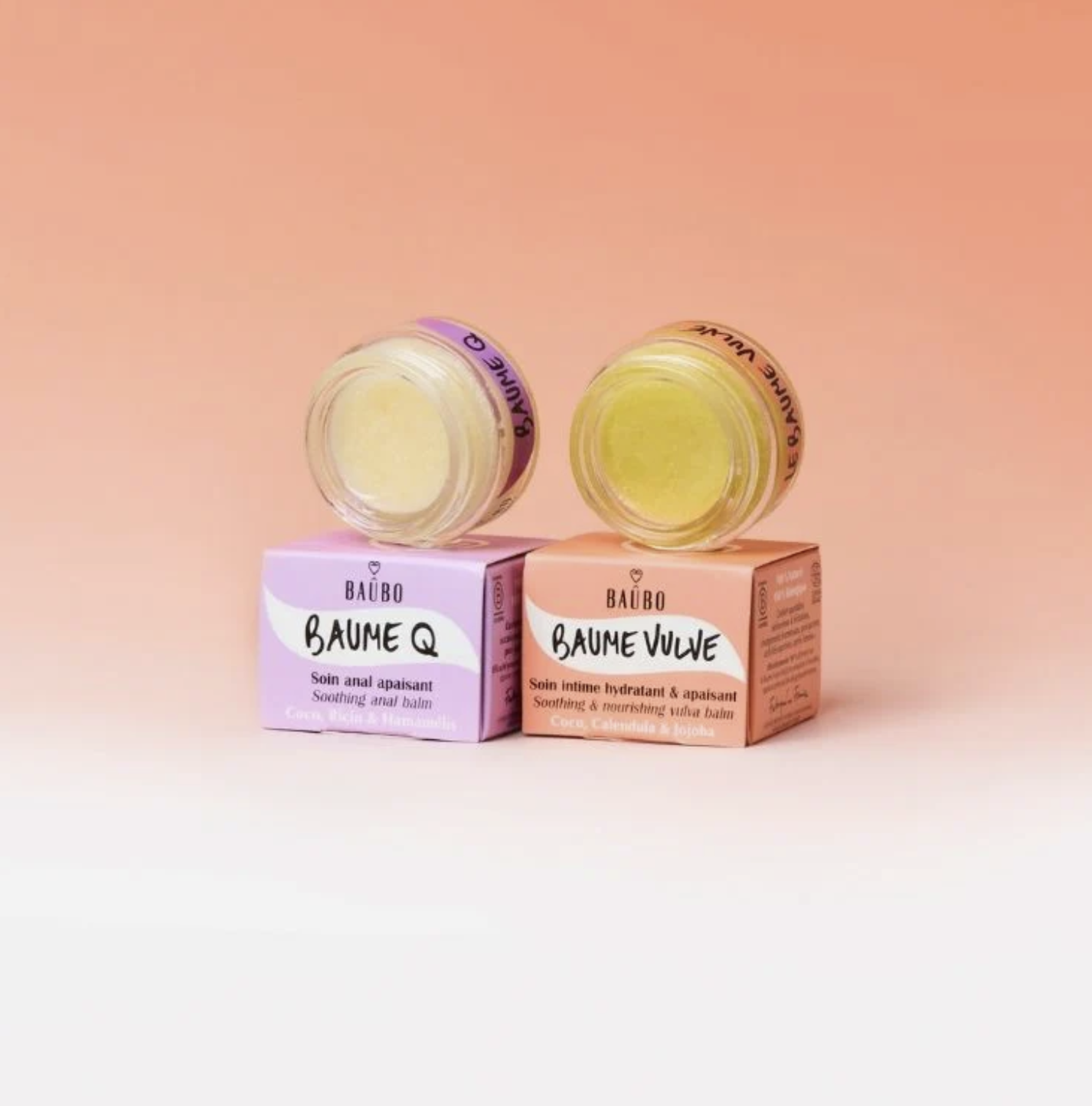 Le baume Vulve Baûbo est formulé pour soulager les irritations et hydrater les muqueuses vulvaires. Le baume Q est parfait pour apaiser les inconforts au niveau de l'anus, il hydrate les muqueuses sensibles de cette zone.