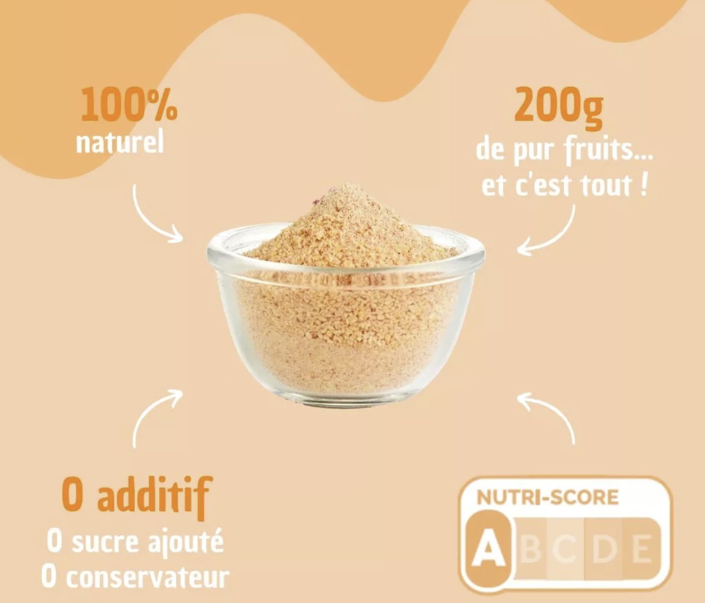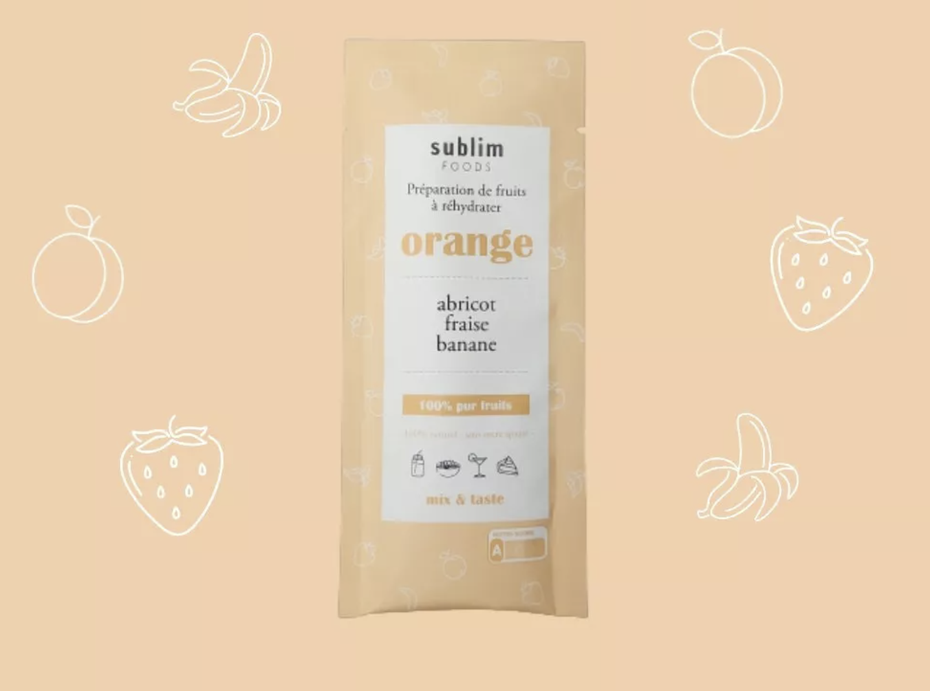 Chaque sachet reprĂ©sente 200 grammes de fruits frais que Sublim Foods a dĂ©shydratĂ© en s’assurant de conserver leurs apports nutritionnels, soit la moitiĂ© des quantitĂ©s journaliĂšres recommandĂ©es.