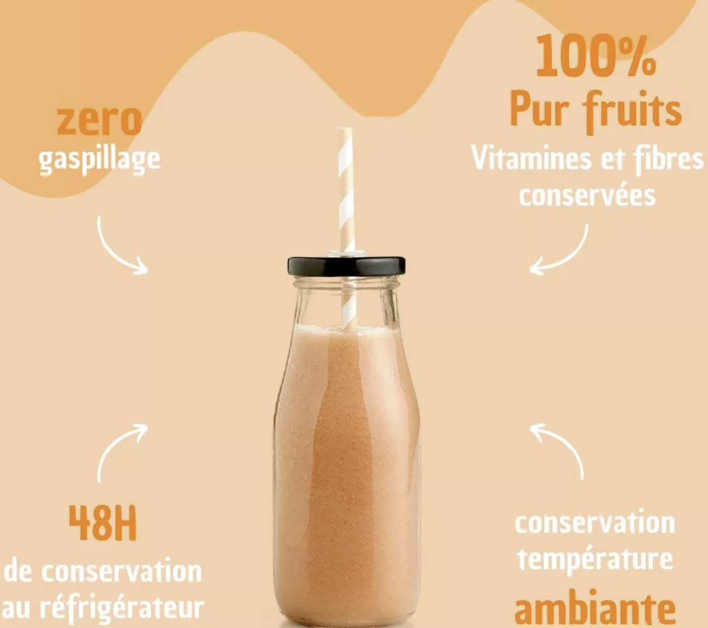Découvrez une préparation 100% purs fruits à réhydrater avec de l'eau, du jus de pomme ou du lait pour réaliser un smoothie, un smoothie bowl, un cocktail, un milkshake ou un dessert facilement et rapidement.