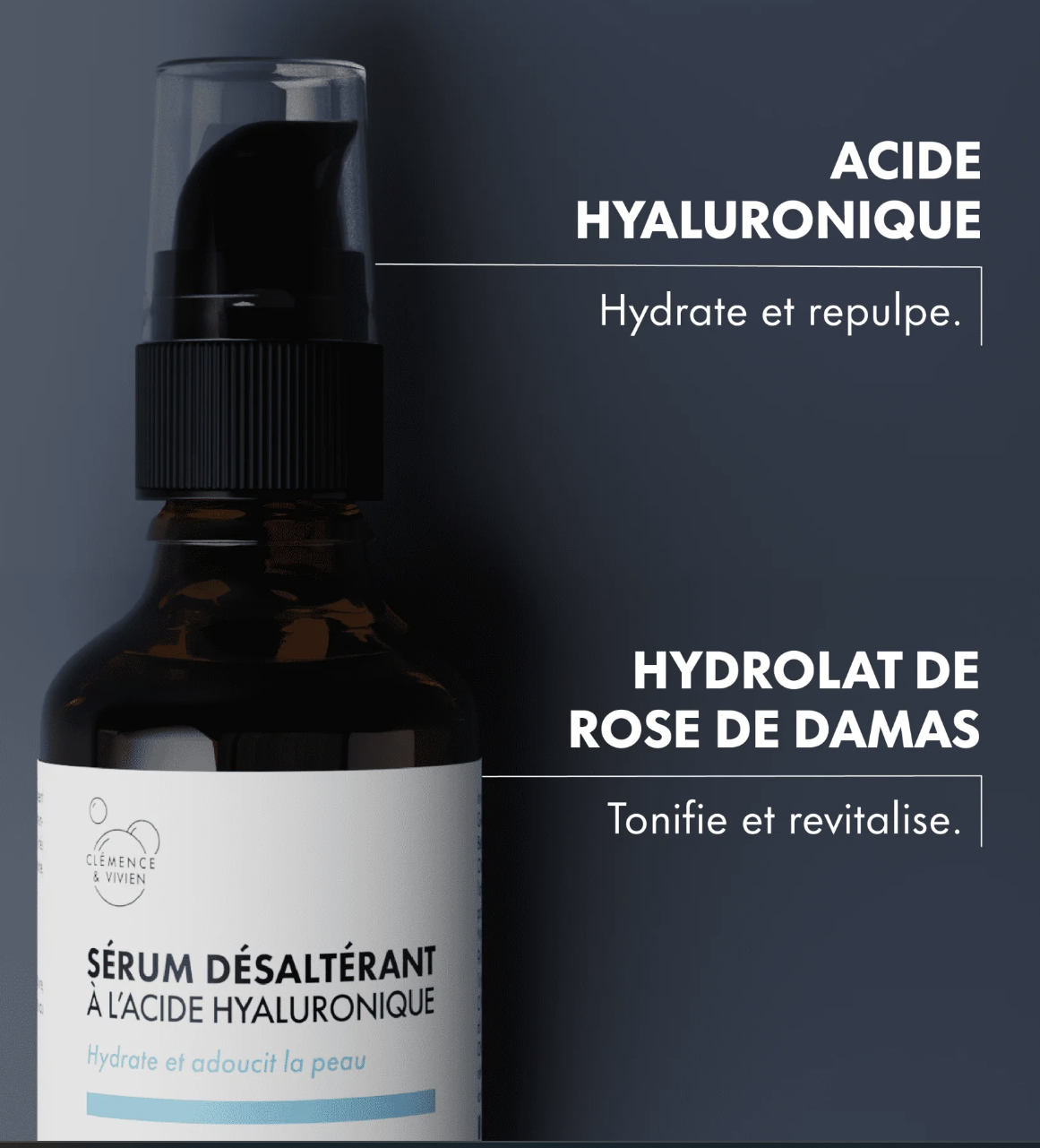 Acide hyaluronique : Hydratant et repulpant, il adoucit la peau et forme une barriĂšre protectrice.